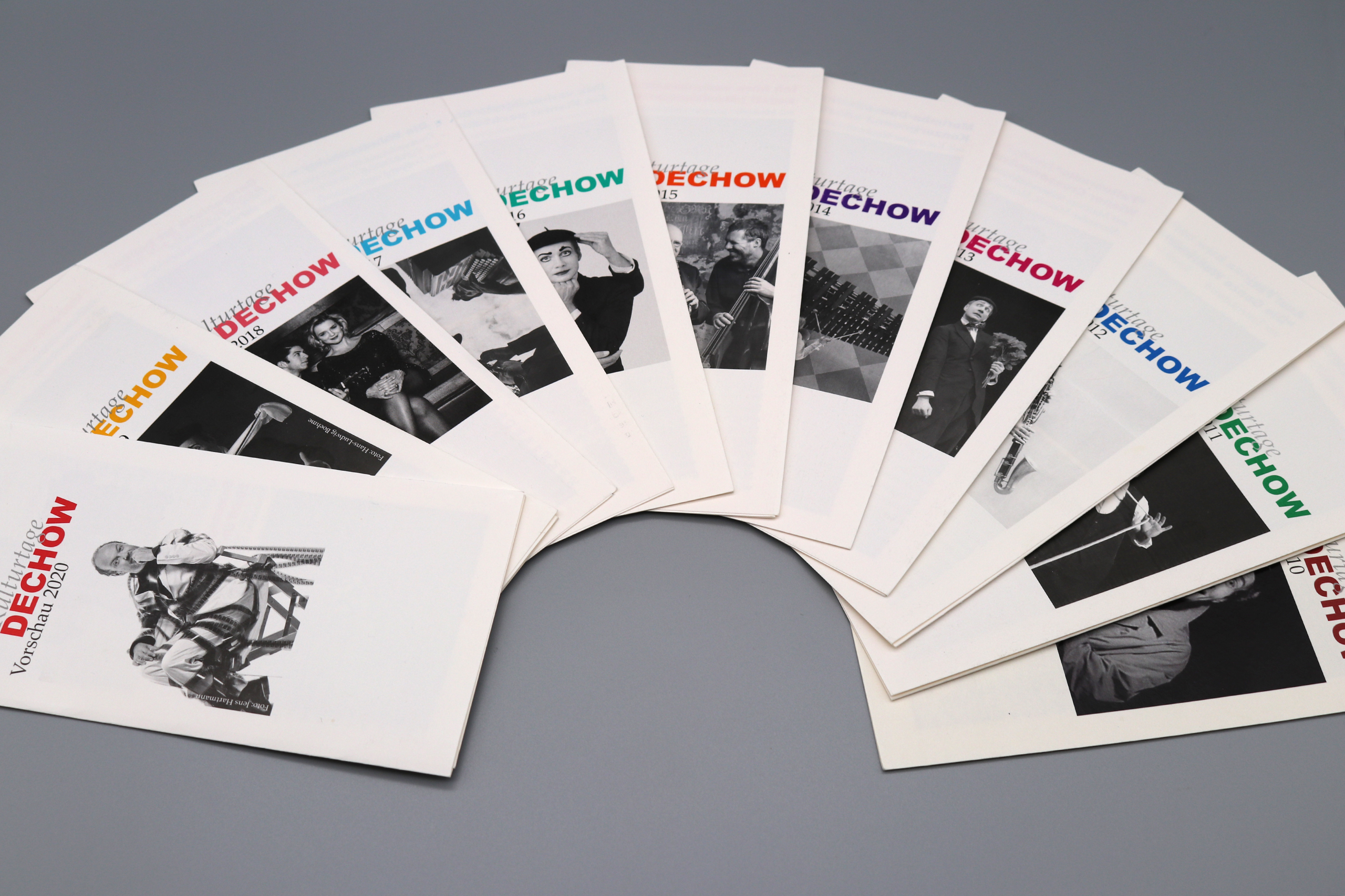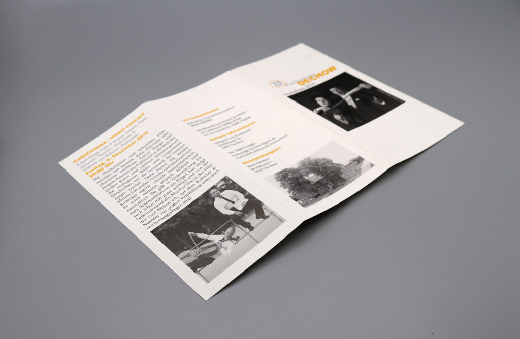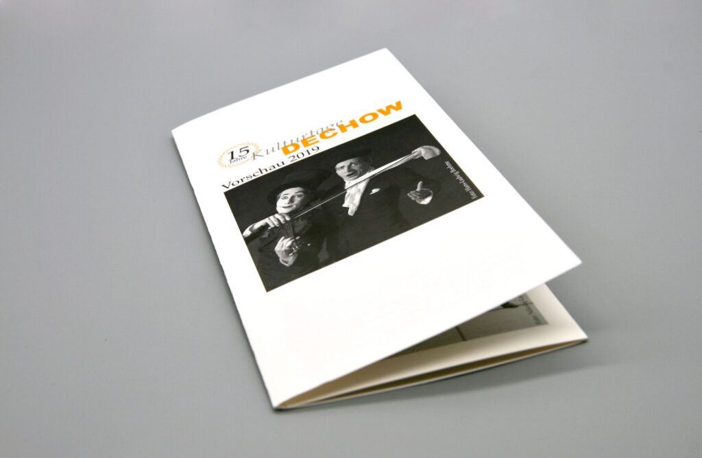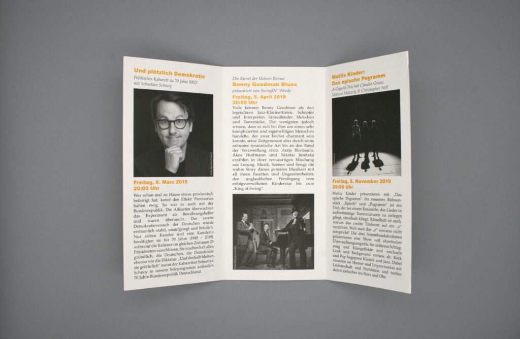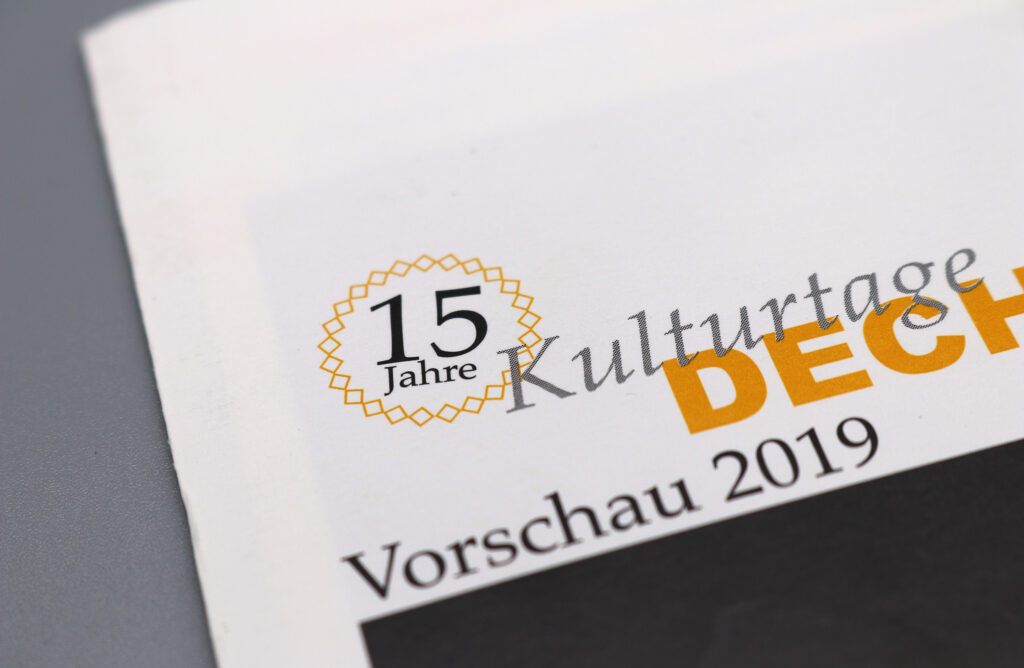 Für ein Kulturfestival gestalte ich seit vielen Jahren einen Programm Flyer im DIN lang Format. Zuletzt habe ich auch ein Jubiläumssignet dazu entworfen.