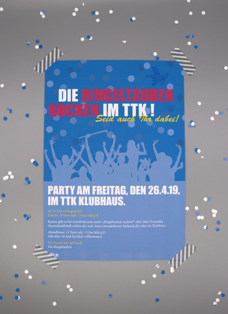 Für die Party einer Hockeymannschaft habe ich einen doppelseitigen Flyer mit einem Plakat entworfen.